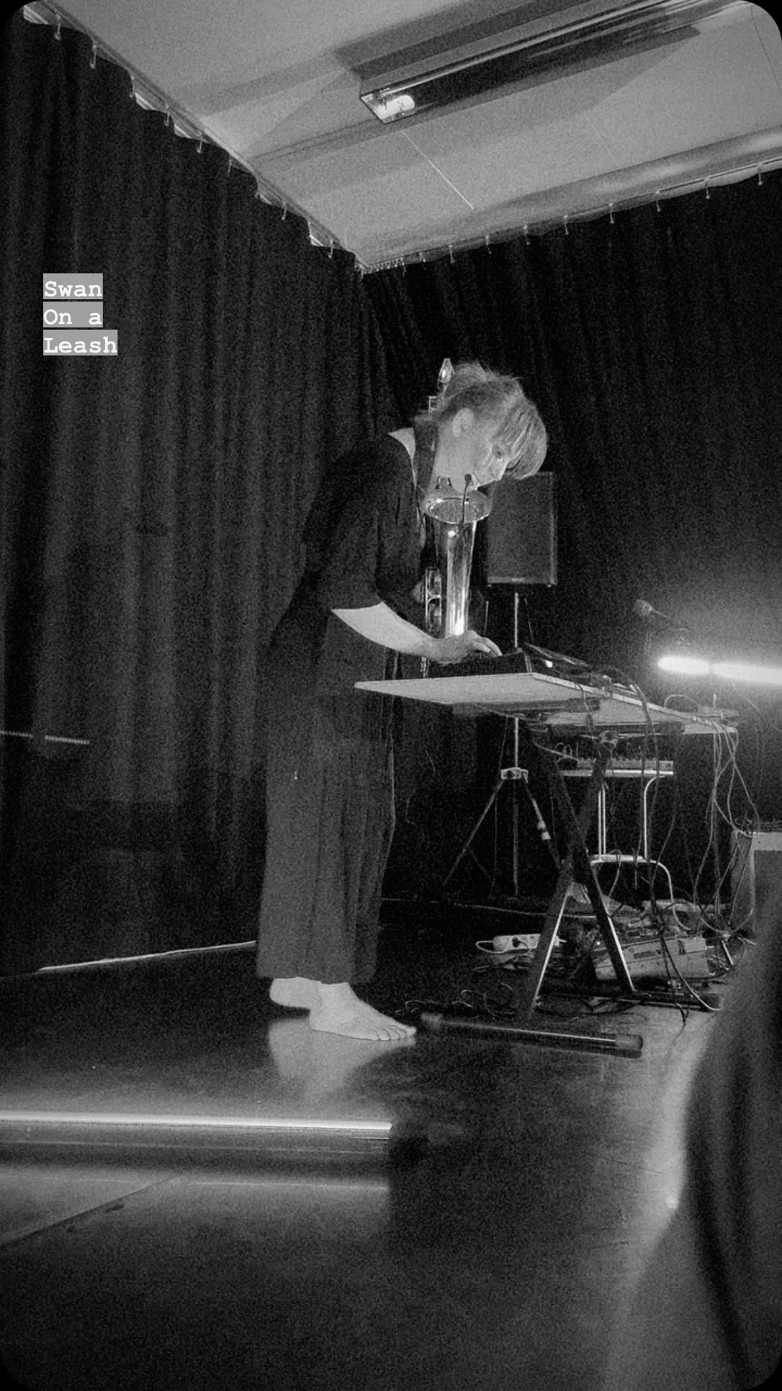 Created by an interdisciplinary artist with a background in dance and saxophone, Swan on a Leash transforms the saxophone into a harmonic and percussive tool, creating immersive, textured soundscapes that combine analog warmth with digital effects.